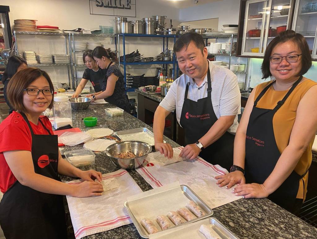 American travel writer Deborah Cater said, “You have to taste a culture to understand it.” So when their Vietnam travel plans got cancelled due to COVID-19, the next best thing a group of teachers chose to do was to have a cooking class together at the Palate Sensations Team Building studio to taste a slice of Vietnamese food and culture.